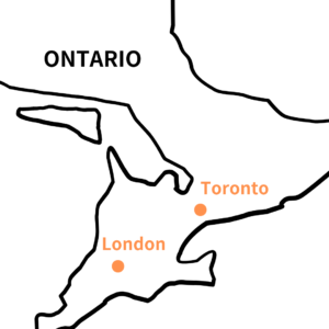 まず位置ですが、ロンドンはカナダのオンタリオ州に属し、大都市トロントから西に車で約2-3時間のところに位置しています。